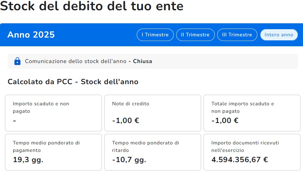 Stock del debito al 31.12.2025